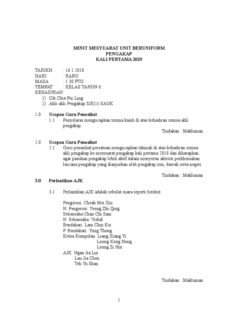 Contoh Minit Mesyuarat Kali Pertama Pdf